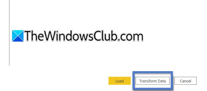 - Klicken Sie noch nicht auf Laden. Klicken Sie auf die Schaltfläche „Daten transformieren“.